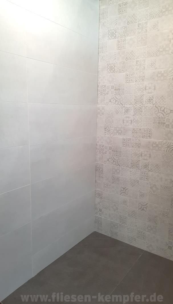 Die Dekorfliese besticht durch ihre Zurückhaltung und erzeugt durch seine Größe ein weites Raumgefühl. Sie setzt jede Wand in Szene