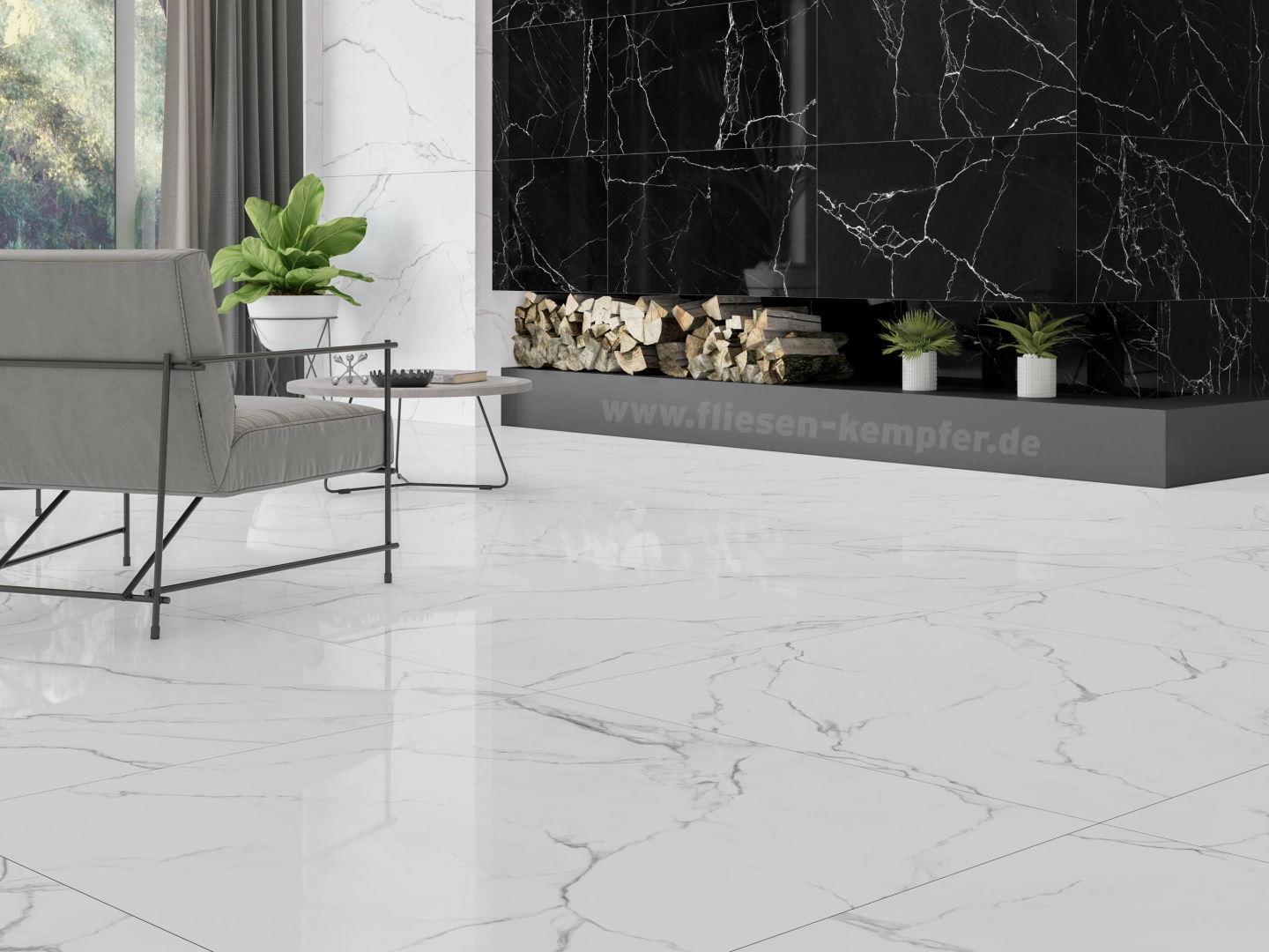 Dieses Hochglanz polierte Feinsteinzeug läßt Ihr Heim von Grund auf erstrahlen. Die zeitlose Eleganz mit Marmorierung sorgt für ein bleibendes exklusives Wohlgefühl