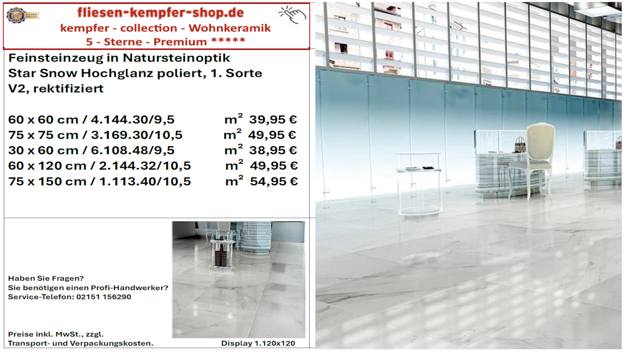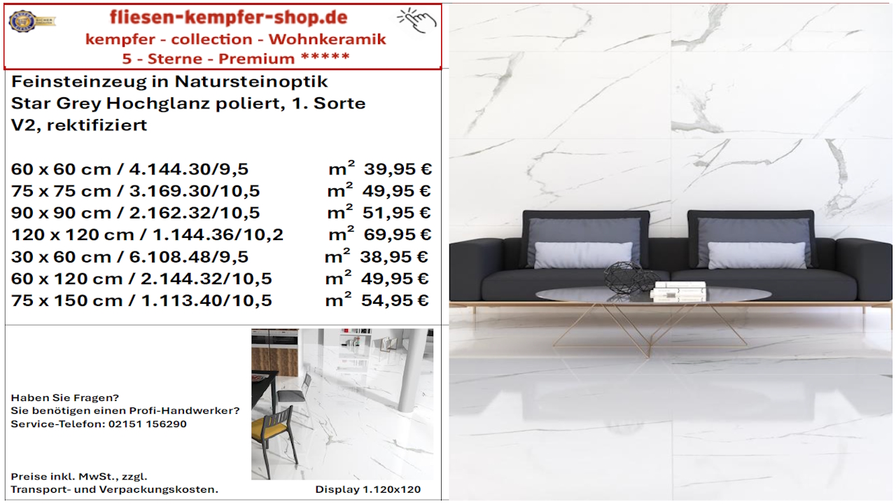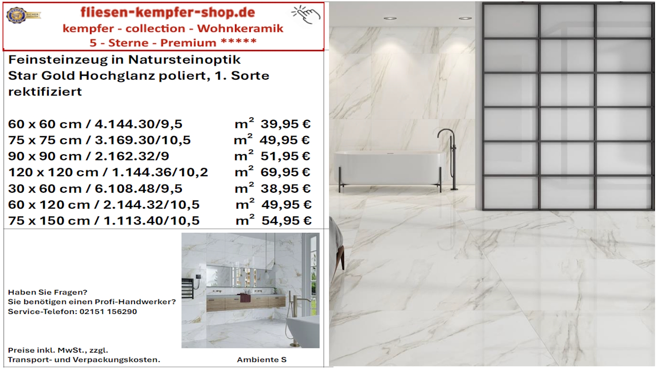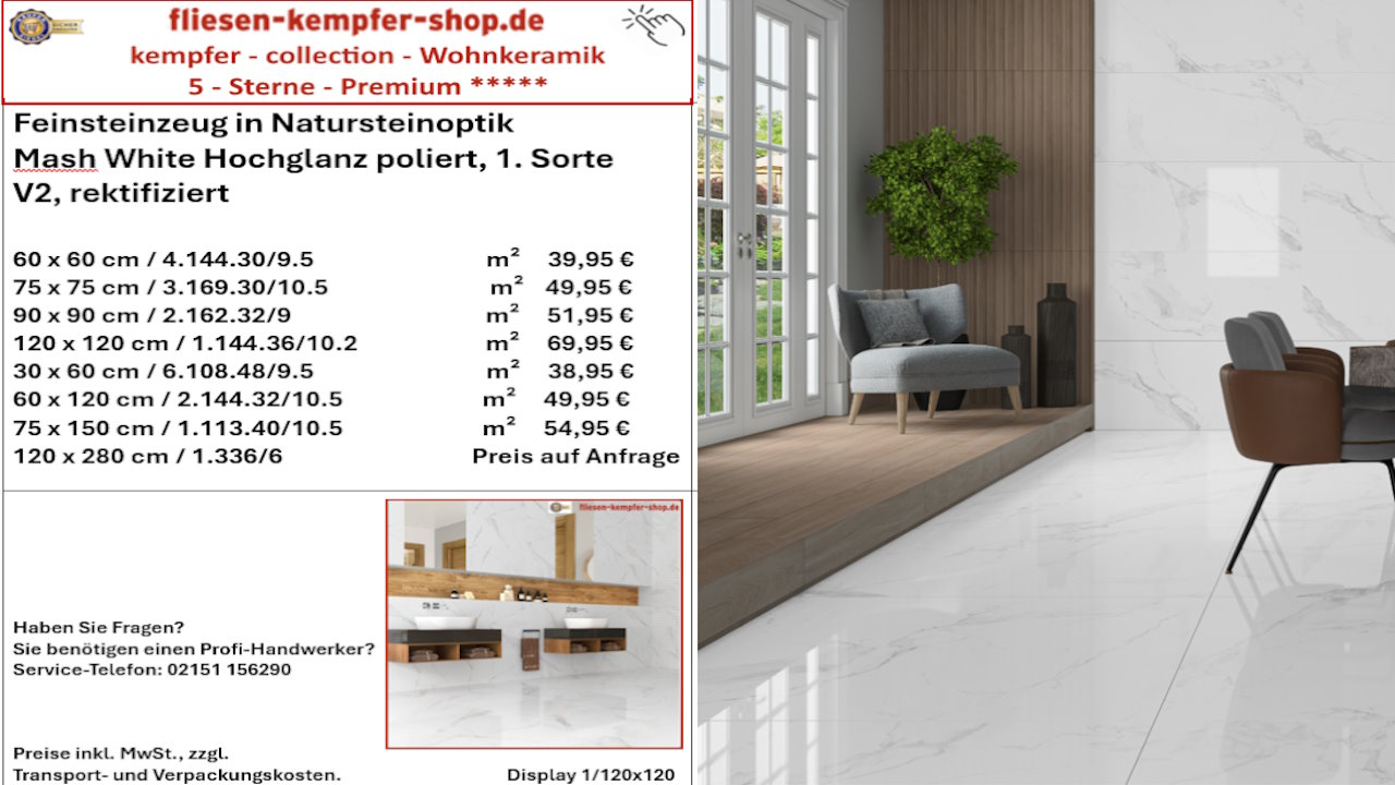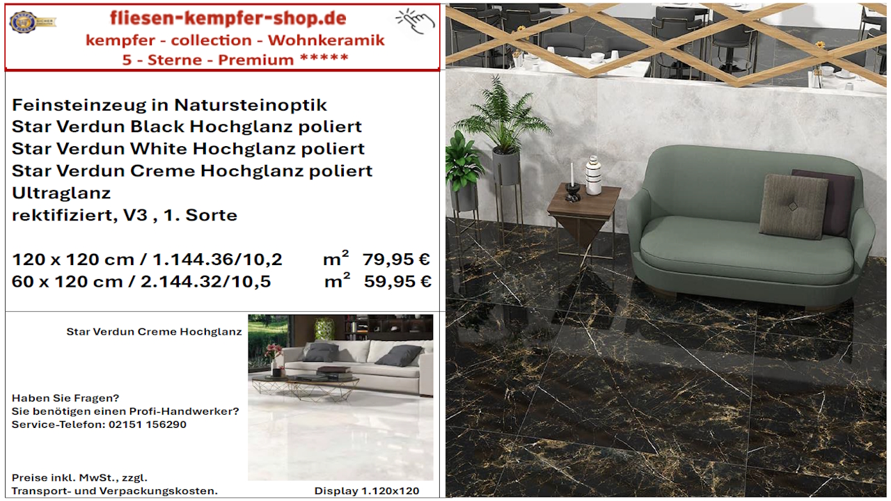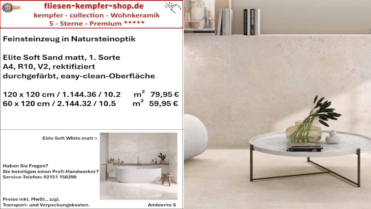 • Musterfliesen sehen Sie direkt vor Ort in unserem Showroom