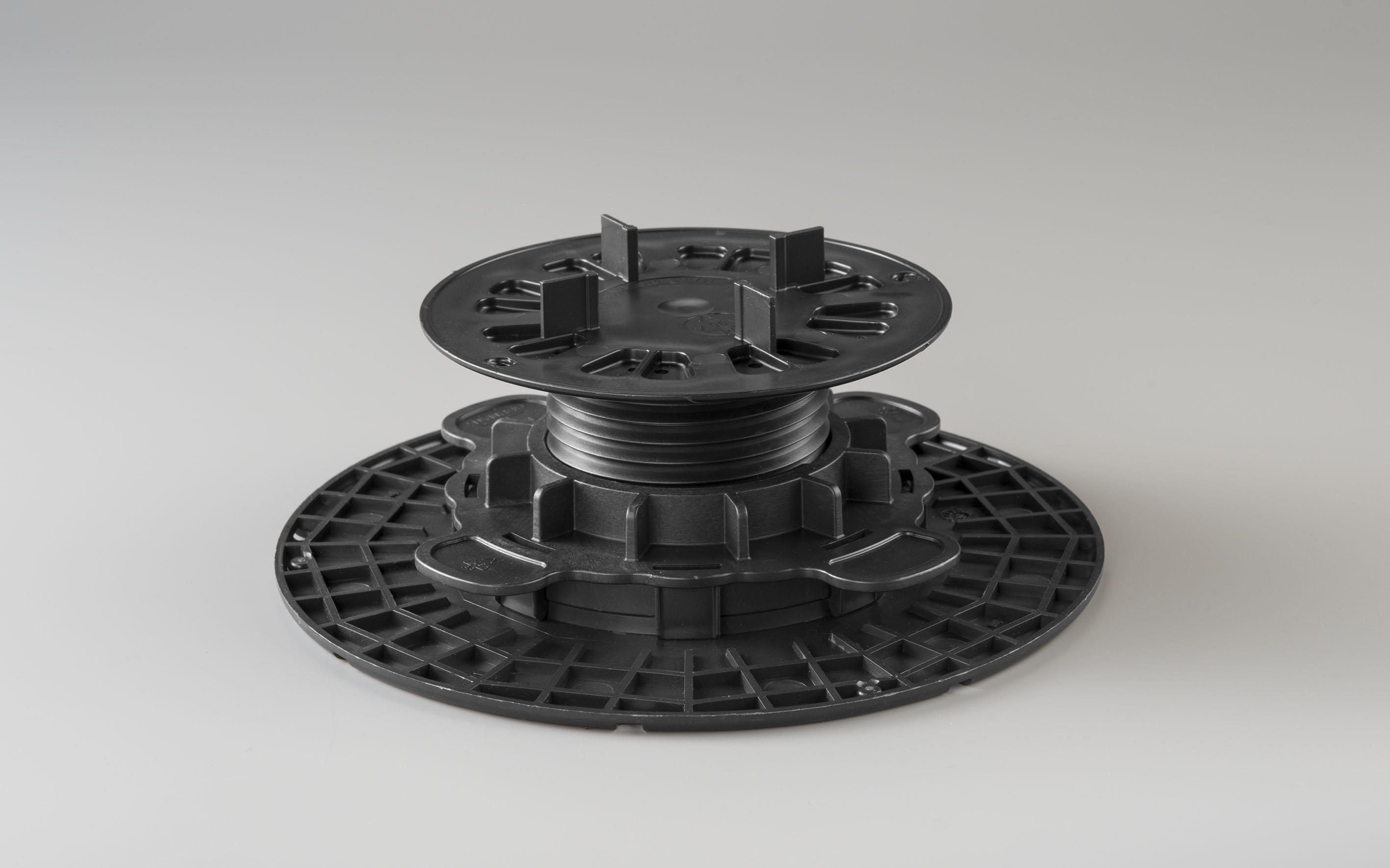 kann unabhängig von dem Gefälle des Oberbelags ausgeglichen und somit ein ebener Platten-Belag hergestellt werden. Mit diesem System wird der Belag kapillarbrechend aufgestelzt, Frostschäden werden