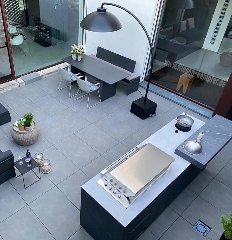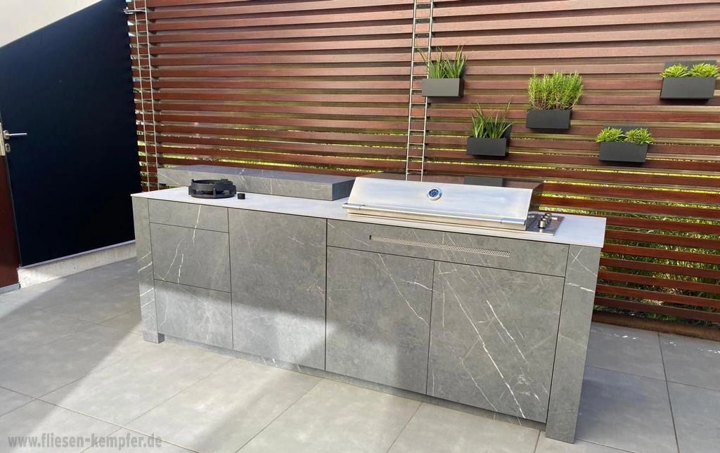 Wir bieten für unsere Kunden keramische Verkleidungen zu Outdoor - Küchen. Zur Optik der Bodenfliesen  wird das Feinsteinzeug für die Outdoorküche ausgesucht. Für eine passgenaue Ausführung steht Ihnen der Aufmaß- und Montageservice zur Verfügung. So werden Ihre individuellen Maße und Wünsche und Bedürfnisse mit oberster Priorität umgesetzt.