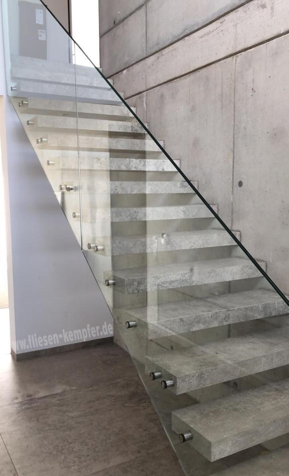 Diese Treppenanlage scheint zu schweben. Die Stufen sind an vier Seiten geschlossen. Zusammen mit dem Glasgeländer wirkt diese Treppenanlage großzügig und hell.