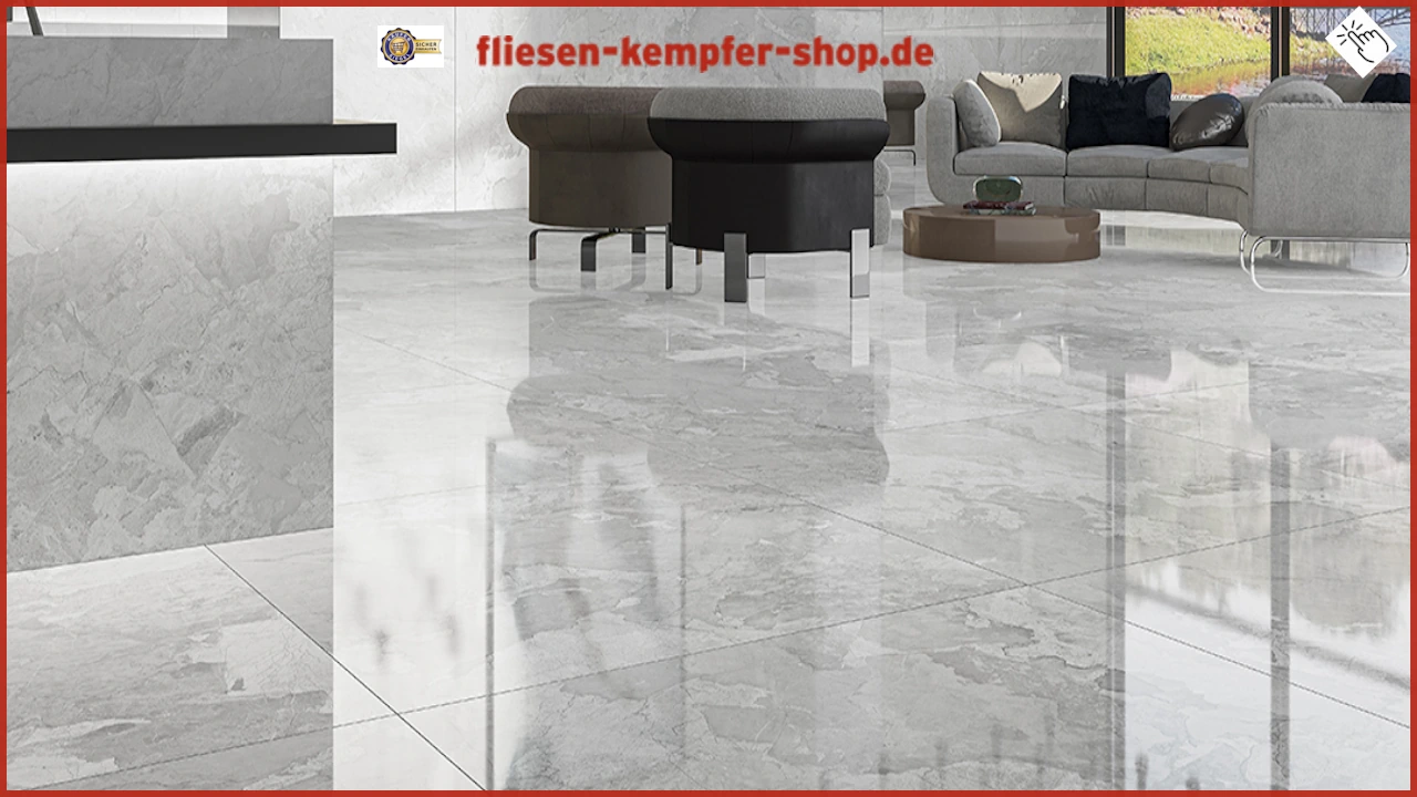 Feinsteinzeug in MarmoroptikNiger silber hochglanz rektifiziert79 x 79 cm, 1. SorteA4, 10mm2 Stück = 1,25 m²/ KartonOUTLETDieses Hochglanz polierte Feinsteinzeug läßt Ihr Heim von Grund auf erstrahlen. Die zeitlose Eleganz mit Marmorierung sorgt für ein bleibendes exklusives Wohlgefühlin gediegener Atmosphäre. Die Bodenfliese ist ein extrem guter Wärmeleiter und daher perfekt geeignet auch für Fußbodenheizung. Selbstverständlich ist zur optischen Vergrößerung von Räumen ebenso die Verlegung an der Wand möglich. Gestalten Sie Ihre Räume.Denken Sie daran; Hochglanzfliesen haben eine sehr geringe Rutschhemmung und bei polierten Oberflächen können  Nutzungsspuren leichter sichtbar werden. DieseFliese in Hochglanz benötigt jedoch keine imprägnierende Schutzschicht. Für die Unterhaltspflege nutzen Sie Reiniger aus unserem Sortiment.