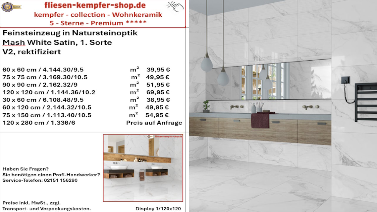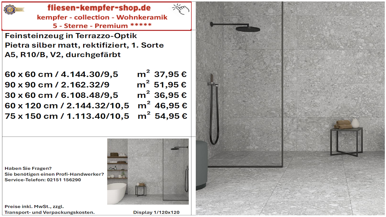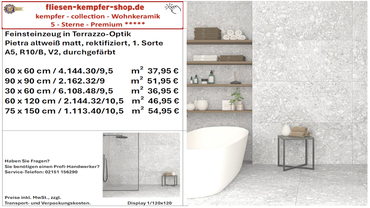 • Musterfliesen sehen Sie direkt vor Ort in unserem Showroom
