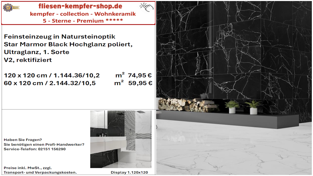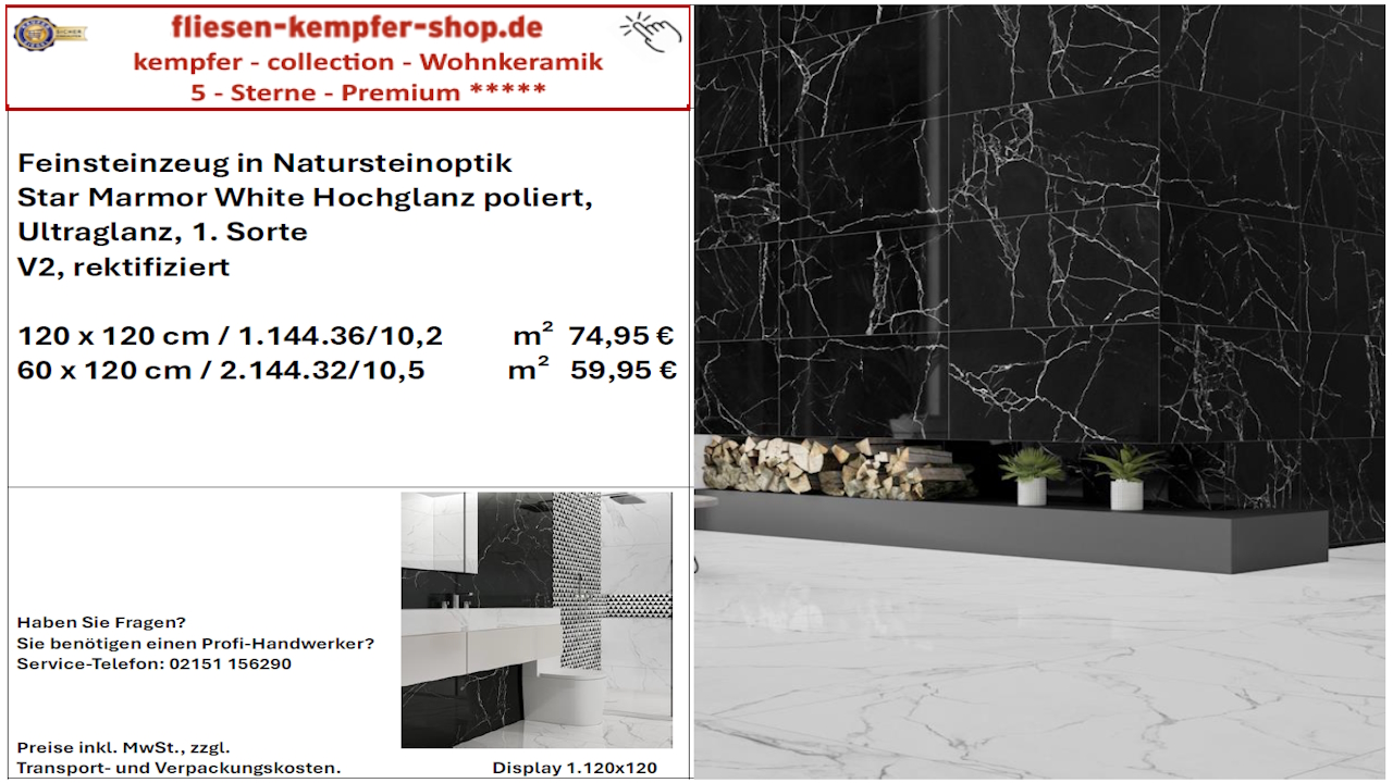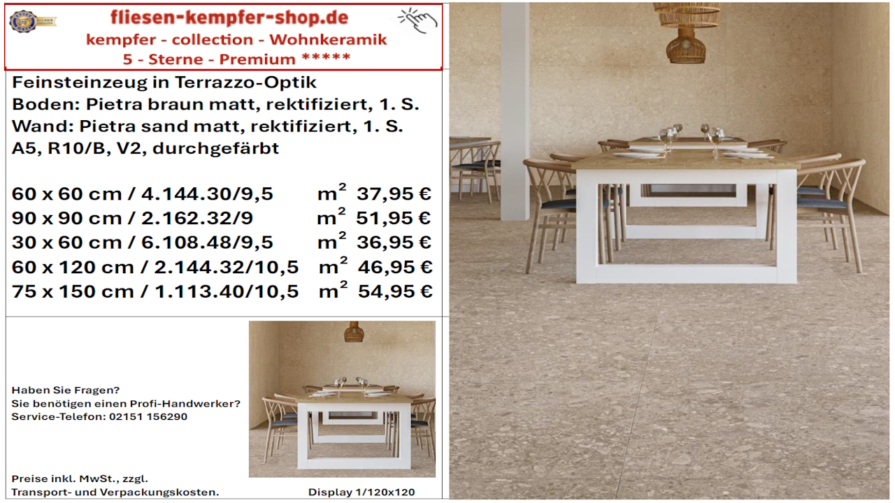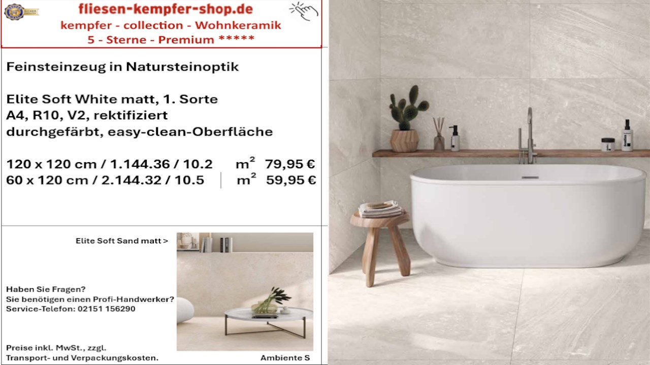 • Musterfliesen sehen Sie direkt vor Ort in unserem Showroom