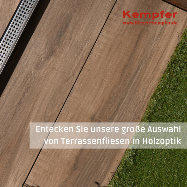 Die Terrassenfliese Leyara  ist die ideale, widerstandsfährige Feinsteinzeugfliese für den Außenbereich. Die natürliche Oberfläche in Holzoptik passt sich ideal an die Natur an.